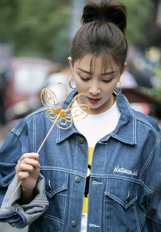 20日,一组殷桃街边吃小吃的美图曝光,照片中,她上身穿T恤搭配牛仔外套,下身穿短裤长腿瞩目,盘起精神又减龄的丸子头,妆容精致,美极了!