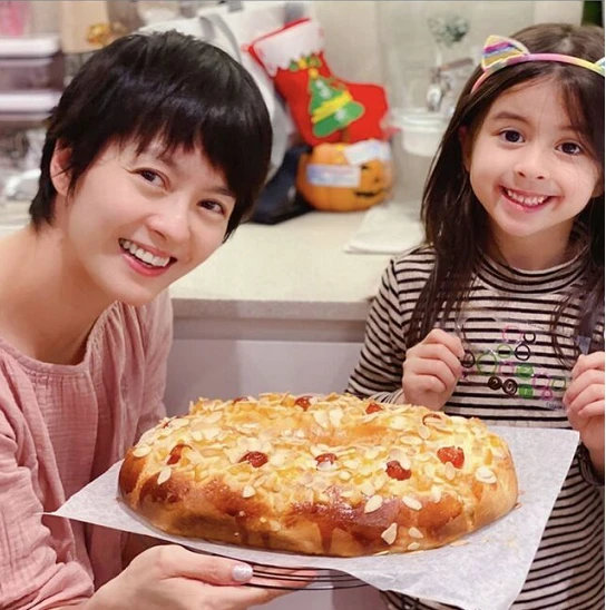 10月21日,梁咏琪在社交平台晒出一组和女儿一起做甜品的照片,5岁的Sofia已经开始换牙了,门牙全都掉光,但丝毫不影响颜值,配上圆圆的大眼睛很是可爱。已经44岁的梁咏琪素颜依然能打,肌肤紧致笑容温婉