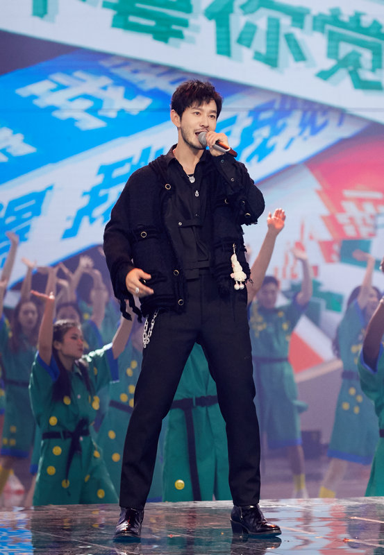 黄晓明黑色工装衬衫搭配西装长裤,设计感十足的银色配饰彰显独特个性,身上挂着的一只粉色的小兔子与他低调沉稳的络腮胡形成“反差萌”。据悉,黄晓明的络腮胡造型是在为新作品做准备。此次与宋茜合作带来的《家乡话》,旋律轻快上口,歌词趣味“洗脑”,二人的全新改编演绎更是默契十足,“燃爆”全场。酷云EYE收视率数据指数显示,黄晓明上场时段为当晚收视率最高峰值。2020年央视春晚,黄晓明参与表演的小品《机场姐妹花》收视率达到整场分钟收视率峰值。黄晓明凭借精湛的演技和敬业努力的表现以及超高的国民度,成为收视保障。