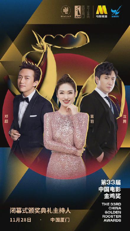 第33届中国电影金鸡奖闭幕式颁奖典礼将于11月28日在中国厦门举行,闭幕式主持阵容公布,将由电影频道主持人蓝羽 、电影人邓超、沈腾共同担任。
