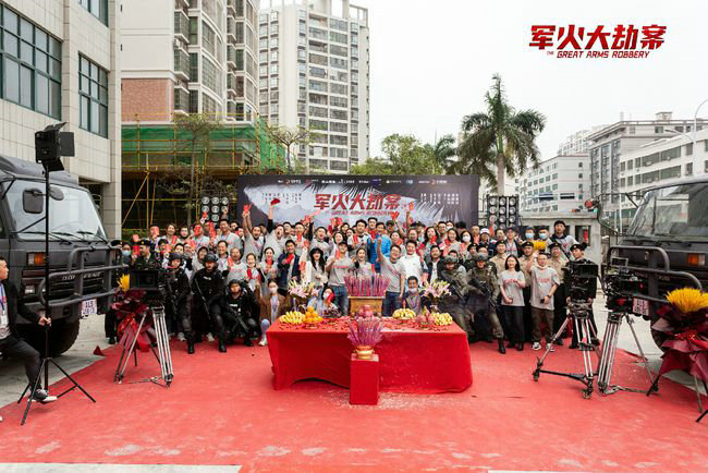 12月11日,动作电影《军火大劫案》在海南正式开机。电影主打“军事”,并融入悬疑、营救等故事情节,主要讲述军火被劫所引发的安全危机事件。电影由青年实力派导演靳浩执导,香港著名演员唐文龙主演男一号,内地青年演员蔡蝶主演女一号,老戏骨李子雄、高兰村、魏子千特别出演,内地演员张雅梦、更登彭措、二套、颜敬杰联袂出演。影片着重刻画和塑造好莱坞式的暴力动作美学,炫酷、罕见的军事武器机械战装将会扎堆银屏,与硬汉英雄突围各方势力热血自救,捍卫和平的故事相得益彰,《军火大劫案》将全新升级打造成为男性荷尔蒙爆棚的燃爽动作电影。