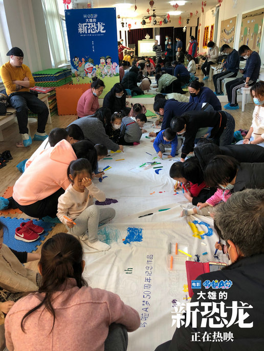 哆啦A梦并不是童年限定IP形象,每一次的剧场版也不是在贩卖情怀,而是力求都能为全年龄层喜爱哆啦A梦的观众带来惊喜。对很多90后、00后而言,每年看一场哆啦A梦剧场版已经成为一个约定,一个寻回童心的固定出口。并且当我们长大后再次回看哆啦A梦,肯定能在儿时的感受上多了一些解读的空间;对孩子和陪伴观影的家长来说,看哆啦A梦更是一个最优解。孩子能从其中学习新知识,收获成长,家长可以借此机会回顾童年,大人孩子都能看的津津有味,两代人甚至还能以电影为主题展开一系列的探讨。谁说亲子之间总是没话聊,哆啦A梦就是连接你们的“第三个朋友”。在为哆啦A梦50周年应援的活动中,有些还在上幼儿园的小朋友在家长的陪伴下参与填色涂鸦、捏制玩偶,共度美好的亲子时光,大朋友和小朋友携手为哆啦A梦暖心应援。