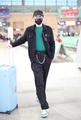》的他一大早现身,当天其戴着棒球帽,身着黑色套装,衣服上的链条抢眼,一路自推行李箱,大方任拍!