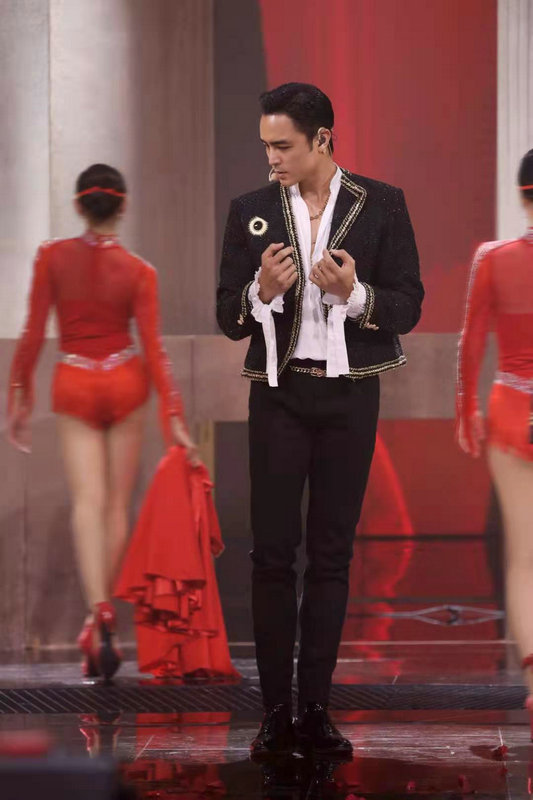 明道在二公舞台中以一身黑色小香风外套搭配白色丝绸衬衫亮相,袖口处更是增添了流苏设计,整套造型宛如童话故事里的王子走进现实。这一次明道所在小组选择了张惠妹的《我可以抱你吗》这首歌,耳熟能详的旋律和脍炙人口的歌词经过重新编曲,融入了浓浓弗拉明戈风情,而明道一袭利落帅气黑衣与红衣女伴舞的热烈对舞,也让人真切感受都了帅气斗牛士的异域风情,为整首歌曲的呈现添色不少。无论是挺拔的身材或是姣好的气质,都牢牢抓住了在场观众及评委们的眼球,就连“毒舌”郑爽都频频感叹“明道实在太帅了”“宛如王子降临”。