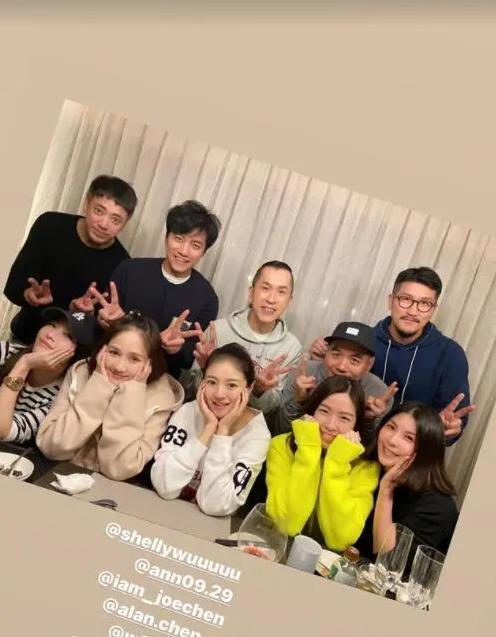 12日有好友晒出与安以轩、陈乔恩、艾伦、苏见信、许茹芸、苏见信等人一起聚会的大合照,安以轩素颜出镜略显憔悴。