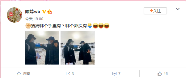 张艺谋妻子陈婷微博分享了老公张艺谋和儿子的合影,配文“猜猜哪个手里有?哪个都没有”,照片中,父子俩在冰天雪地里互动,张艺谋先捏着拳,又张开双手,似乎在玩游戏。