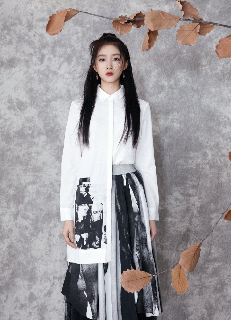 关晓彤一组水墨国风造型美图曝光,身穿白色上衣搭配水墨长裙,尽显端庄优雅。