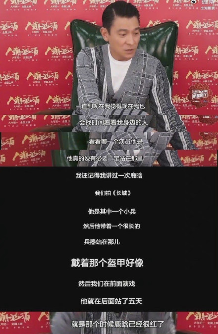 16日,刘德华在电影《人潮汹涌》采访中回忆起跟过往其他演员的合作经历,特别提到了鹿晗。他表示,鹿晗在《长城》片场的敬业精神让自己印象非常深刻。当时鹿晗扮演一个小兵:“我们在前面演戏,他真的就在后面站了五天,那个时候鹿晗已经很红了。”