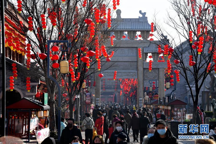 2月16日,即墨古城游人如织。春节期间,山东省青岛市即墨古城换上红红火火的“新年妆”,各种牛年主题布景与花灯吸引大批游客前来游古城、品美食、赏民俗,感受浓浓的年味。新华社记者