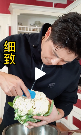 视频中,田亮专注清洗花菜,从12点洗到到18点才洗好了。