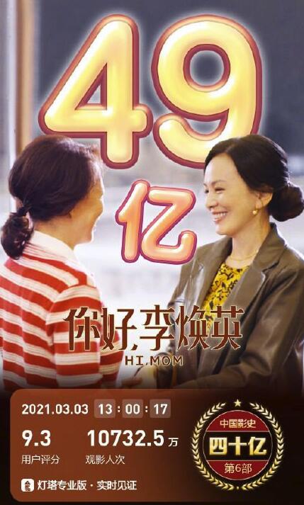 《你好,李焕英》票房破49亿 位居中国影史票房第三