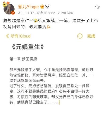 颖儿给元娘续写结局 网友大呼“太可爱了!”