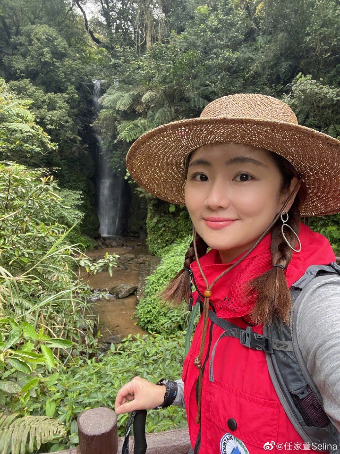 3月23日,任家萱Selina在社交平台晒出一组自己的登山照,并夸赞山顶360度山景好开阔。