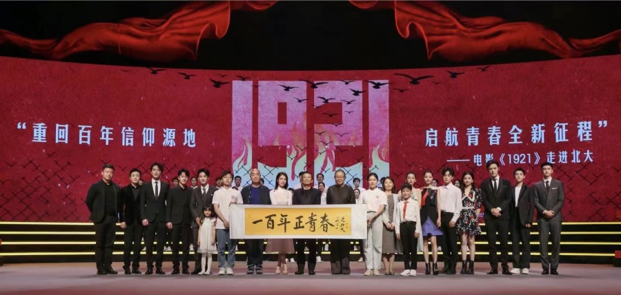 昨日,电影《1921》重回百年信仰源地北京大学召开发布会,再现首批中国共产党人,在风雨如磐中担起了救亡图存重任,让中国革命前途焕然一新的历史故事。影片监制、导演黄建新,联合导演郑大圣,制片人任宁,主演黄轩、袁文康、王仁君、祖峰、刘家祎、张超、张云龙,韩昊霖、郭子凡、萱萱、张婧仪、钟楚曦、周也一同亮相。