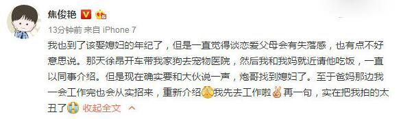 12月14日,焦俊艳大方发文承认恋情,直言:“现在确实要和大伙说一声,炮哥找到媳妇了。”