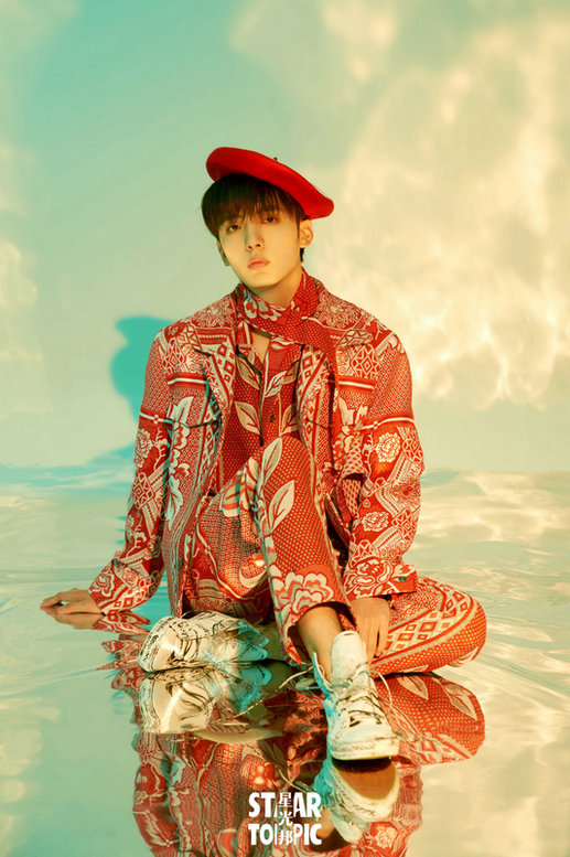 换上红色套装的谷蓝帝十分亮眼,蓝色光影和红色服饰碰撞出别样的风格,玩趣十足。他慵懒自在地舒展肢体,将自己完全融入进情境之中,向镜头表达出内心所想。被风衣包裹住的他,在“落日余辉”中再现温暖坚定的一面。
