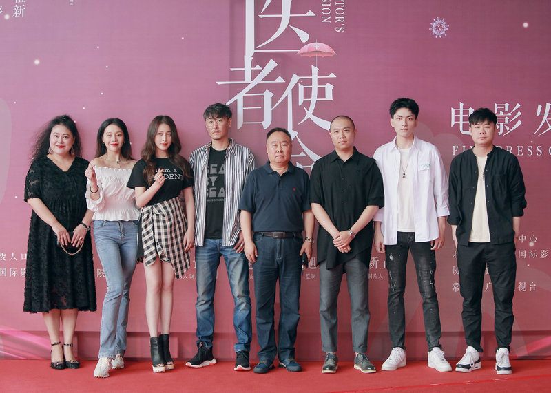《医者使命》主创合影近日,演员甘婷婷现身院线电影《医者使命》发布会现场,该电影聚焦2020年初的武汉新冠疫情,三对截然不同的年轻人聚集在一起,通过电影蒙太奇的拍摄手法向观众展现了特殊背景下人与人之间的