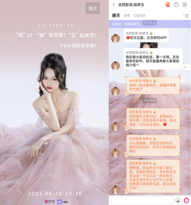 近日,丝芭影视旗下新人陆婷玉开通了口袋48,这是丝芭旗下除了SNH48体系外第一个开通的艺人,此前只有少女偶像在该专属APP上与粉丝进行互动交流,所以作为影视演员入驻此举引起了口袋48用户和粉丝们在各平台的热议,但是在一众声音中开始的直播效果让人惊喜。直播中陆婷玉表现出非常讨喜可爱的性格,观看人数一度达到两万多人次,站内粉丝快速涨粉至近八千人,强有力地说明了陆婷玉的吸粉能力。直播结束后各平台原本小有争议的声音逆转,更有甚者猜测丝芭这一次要有大动作了。丝芭传媒打造了国内最火的大型女子偶像团体SNH48及其姐妹团,作为国内最资深的少女偶像缔造者,这回要在影视板块“造星”,打破以往偶像转影视的艺人出圈模式?