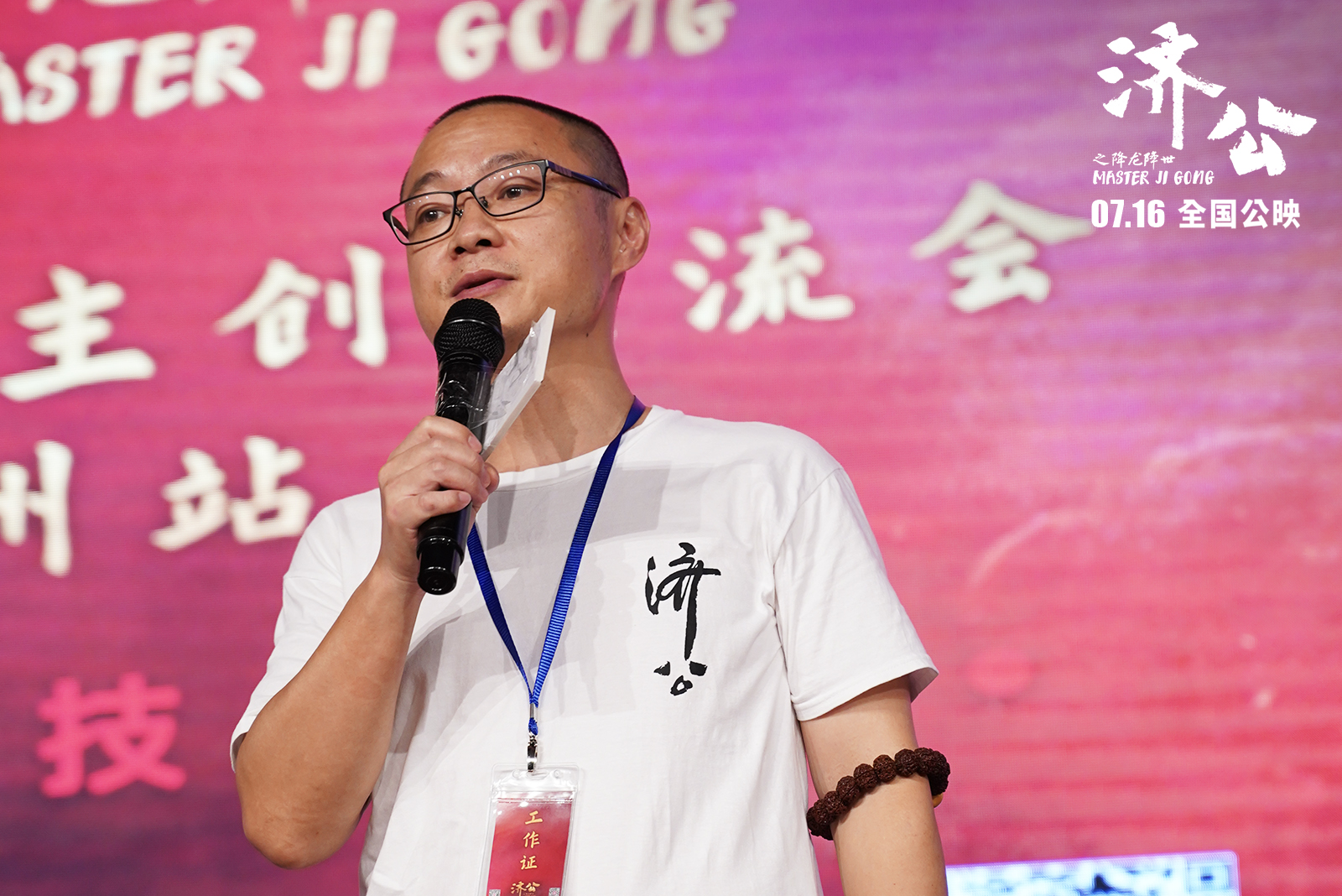 常州与济公有着深远的渊源,济公在游历四方施德行善时,经常来到常州府。为此,电影《济公之降龙降世》的主创们在精心考量下,将全国第一站路演选择在了常州。本次路演,选取了影片30分钟超长片段进行放映,细腻精良的特效画面展现了电影的画面风格,主角李修缘逆境中的成长转变,以及他与父亲之间的情感矛盾,每一个细节段落都得到了现场观众的积极讨论与无数好评。映后,主创们分享了电影《济公之降龙降世》的创作过程,观众们也与主创们就电影《济公之降龙降世》做了深度交流。艺术总监王伟谈及整个团队在决定要做济公的时候,探讨了近100次,该以怎样的形象去呈现,该从什么视角去讲述这个人物,该从这个人物身上去传递什么样的理念等等这些核心问题。而片中那句“有些事你必须去做,有些人你必须守护”,一直萦绕在每一个主创的心中,不但如此,也深深的触动着在场学生们的内心。在被问及为何要做济公这个人物时,导演乔彧讲到“济公既是一个英雄,也是一个普通人,他曾是少年,在那样顽皮躁动的年纪里,他更像我们普通人,但普通人也会成为一个英雄,就拿我们当下遇到的疫情一样,总有一天我们每个人都要站起来去承担某份责任,去做自己、做他人的英雄。”