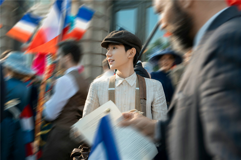 其中,王源饰演17岁在法国留学时期的邓小平,在留学期间邓小平就因刊物印刷清晰、装订简雅,被身边的人们称赞为“油印博士”。随着镜头的推进,王源挽起袖子在昏暗的场所里时而专注印刷,时而认真忙碌。随后聊天的场景里,深色马甲、贝雷帽,一身报童穿搭青春气息尽显,王源不仅把握住17岁少年的青春活泼,更通过神态与台词将邓小平17岁时对未来、对国家的憧憬与希望展现出来,尤其是一口四川话十分显贴近角色。