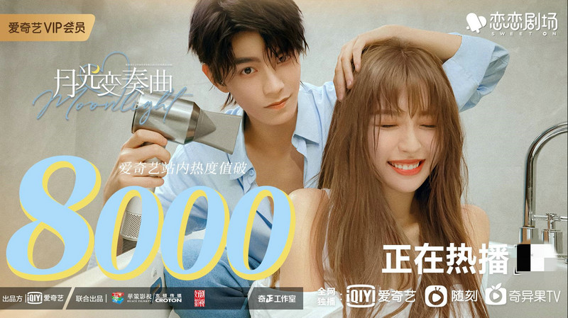 以恋恋剧场最甜剧集为定位的首发作品《月光变奏曲》,成功为“爱情+”全新厂牌打响第一枪。各类甜蜜名场面话题花式屠榜,爱奇艺热度破8000+,播出即站稳5月高甜剧集TOP1,冲初宇昼CP也成为网友心中名副其实的bg之光。《月光变奏曲》以剧情情节与CP设定,让网友直呼“桥段经典不老套,甜度爆表绝非人工糖精”;“今晚月色真美”、“生活原来是个动词”日系作家男主昼川甜言蜜语高甜出圈,带起了全网嗑糖的愉快氛围。该剧在甜爱基调之上,更融入多样的元素,将浪漫、甜蜜做到极致,在圈层内获得了广泛的认可。