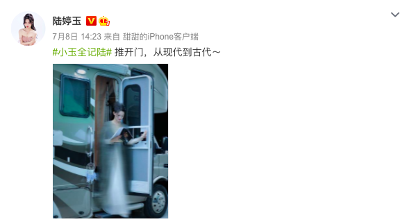 近日,陆婷玉在社交平台上发文“推开门,从现代到古代~”,并配上一张片场侧拍照。可爱的是因为涉嫌妆发造型剧透,陆婷玉用“高超”的技术将自己的头顶和全身服装都P模糊了,使角色形象绝对地密不透风。此前在《花戎》开机仪式上,陆婷玉也是身着剧组的定制白T出现,并未公开过任何一个造型。这也是继《慕南枝》和《唐小山赶考记》后,陆婷玉第三次出演古装剧了,想必对古装剧组的日常适应已经驾轻就熟了。比较特别的是这一次是奇幻仙侠剧,正是她曾经在采访中提到的非常想出演的类型,终于有机会尝试,饰演的还是“天界东厨司命”,古灵精怪的“意儿”,不知道这个角色会给我们带来什么样的惊喜。