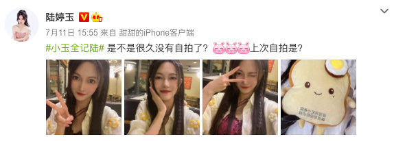 眼尖的粉丝更是通过自拍里的环境看出陆婷玉所处是火锅店,想问偶像是否去吃了火锅?陆婷玉在粉丝心里一直是个漂亮的小吃货,即使是现在在横店拍摄《花戎》,剧组休息时间也不忘在口袋48上开直播和粉丝分享日常和随时随地地“吃播”,率真可爱的性格十分圈粉。