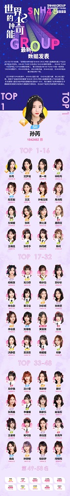 SNH48 GROUP第八届总决选中报发布 孙芮位居第一