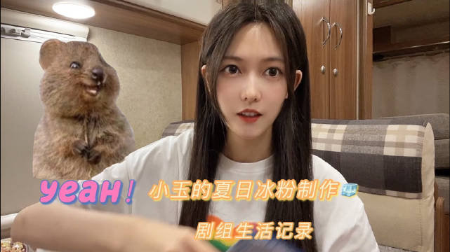 这个美食 vlog 可以说是非常新鲜,就在陆婷玉横店剧组的房车里出炉。陆婷玉自己从网上购买了冰粉的材料包,红糖伴侣和冰粉伴侣坚果碎等,拿到房车里备着,在等戏期间拍下了这个 vlog。视频画风配字也都是元气粉黄的夏季风,剪辑鬼才这次也用心啦~