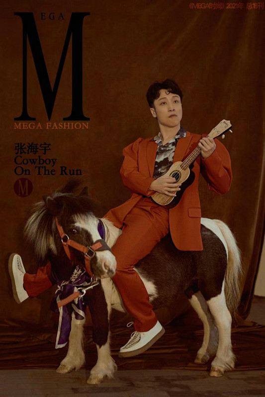 近日,演员张海宇曝光一组为《MEGA FASHION》拍摄的时尚大片。照片中,张海宇身着一身正红西装,手拿尤克里里骑小矮马的风格像极了“阿凡提”,戏剧感十足。或是一身灰色套装与