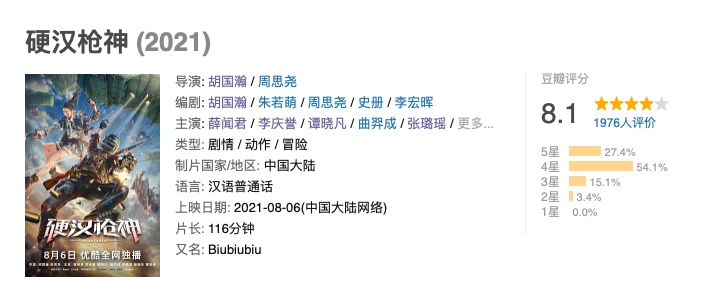 豆瓣评分8.1!真人吃鸡电影《硬汉枪神》优酷正在热映