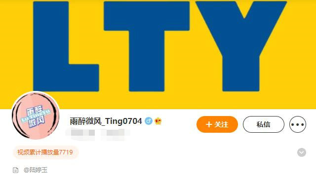 陆婷玉的粉丝站名叫“雨醉微风_Ting0704”。背景是一个大大的“LTY”,是陆婷玉名字的首字母,简介里也“@陆婷玉”,能看出来是陆婷玉的专属个站。