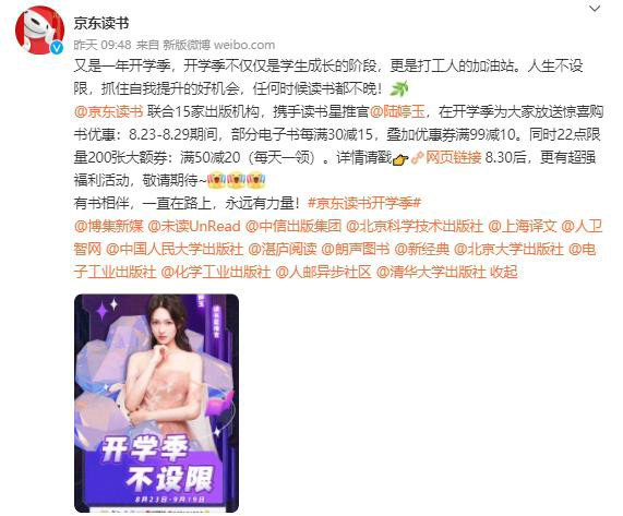 陆婷玉担任京东读书星推官 开学季引领读书热潮