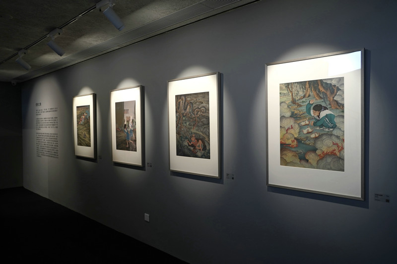 在此次展览首日的开幕活动中,李楚杨本人来到现场,为前来观展的观众进行讲解。李楚杨善用绢本设色技法和深沉复古的色调营造出怀旧的氛围,着重叙事性的画面、独特的人物形象……这些充满时代印记的图景让观者能一窥童年和成长的回忆,也赋予了这些记忆另一番象征性的深远含义。