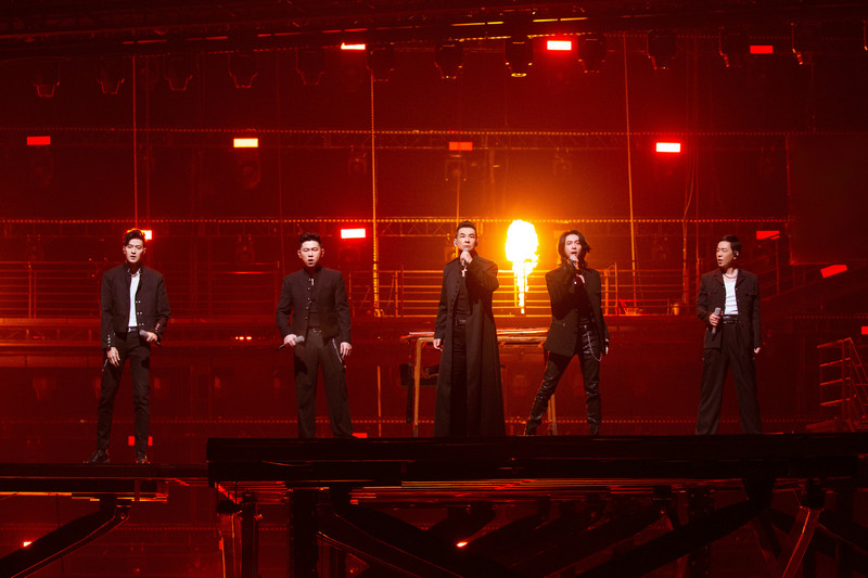 在副歌部分,欧阳靖原创了一段燃炸舞台的粤语rap,“龙的传人龙的精神环游全世界,黑头发黑眼睛黄皮肤”的歌词一出口就点燃了全场观众的爱国情怀,五位哥哥随之高燃合唱《男儿当自强》选段:“傲气面对万重浪,热血像那红日光,热血男儿汉,比太阳更光”。在赵文卓、张淇互飚高音之下,观众深深感受到了“努力、奋发、向上、图强”的力量。正如欧阳靖所说,把我们黄皮肤的精神、华人的精神、龙的传人的精神保持下去,“不只是会有明天,而且明天会更好”。