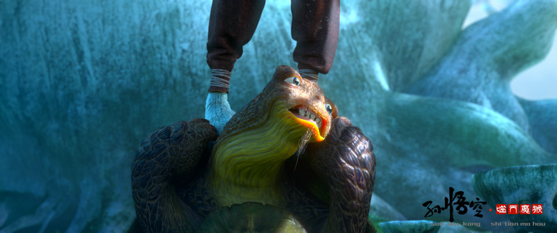 本次发布的“孤岛独白”片花一改影片此前阴郁深沉的基调,展现出了影片轻松幽默的惊喜一面。随着诙谐的音乐镜头缓慢上移,一只身体笨拙的“老年龟”吃力地支着身体顶起魔猴噬天,可怜兮兮。而噬天则踩着乌龟,面对着挂在树上的一圈绳索自顾自地念叨着,忆及昔日自己充满灵光天赋却不被认可,因而唏嘘不已。愤懑不平之中,只见噬天双脚一蹬,吐舌翻目挂在树上。而乌龟被踢得狼狈滚到一旁,狼狈的姿态令人忍俊不禁。不料随后画风一转,半晌不到的时间噬天非但没死,反而自带的魔力烧断了绳索、顺势落地。虽然仅有短短一分钟的片花,但影片却向观众展示良多。诸多细节堪称考究,精致描摹出噬天的脚掌、毛发等密集的细节,动效自然逼真,也展现出了魔猴身上生动的猴类特征,一展这个酷飒魔王的反差可爱,直戳人萌点。另外噬天与乌龟所处的地方乃是一派荒凉孤岛,寂寥的云海环绕。大气磅礴、恢弘写意的国风画风下,联系起此前发布的“锁链封印”片花,噬天的境遇也不禁令人猜测:堂堂魔猴竟然沦落“孤寡”,是否与遭遇封印有关?