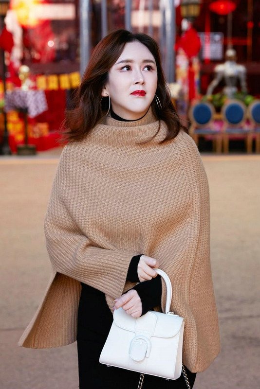 刘竞导演纯色毛衣出行,静雅温暖绽放璀璨美丽