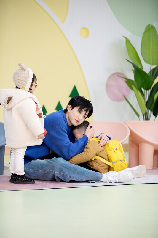 范世錡老师在入园仪式中表示“遇到喜欢的小朋友就要主动出击,一定可以成为孩子们的朋友。”在遇到东北“小萌男”贺鑫洋后,一直牵着他不松手引导他玩猜球游戏,逗得小朋友哈哈大笑,更是在贺鑫洋舍不得与爸爸分开的情绪上来时,主动上前给予拥抱安慰。