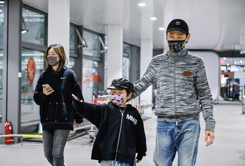 杜德伟携妻儿现身北京机场 口罩遮面难掩逆龄好状态