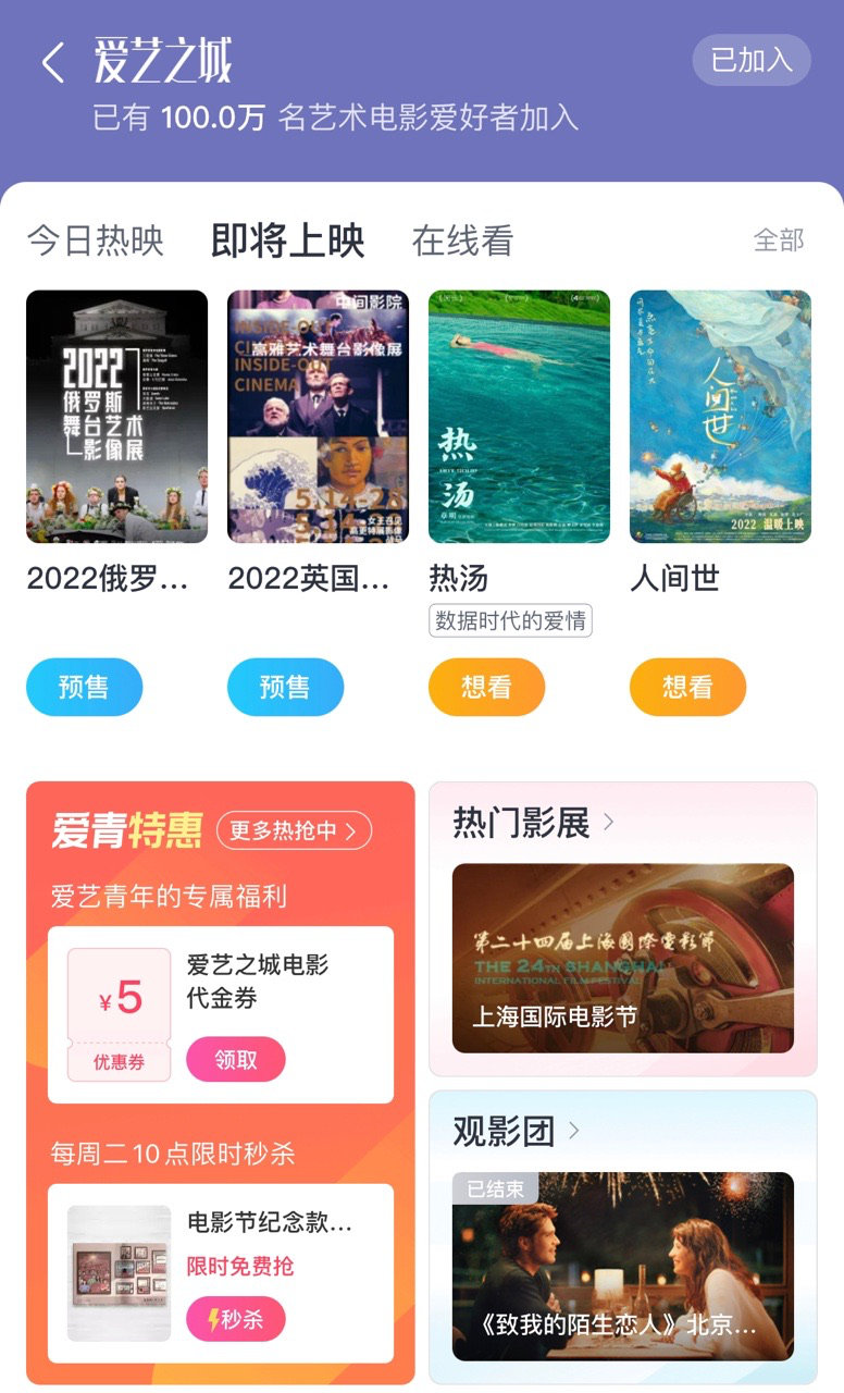 用户破100万,“爱艺之城”打造最大艺术电影社区服务资深影迷