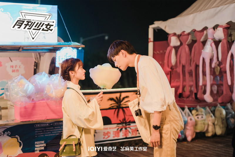 在派对上沈月饰演的左千黛手拿棉花糖,王敬轩饰演的叶崎低头轻尝;在操场中他们穿着夏日短袖微笑对望;操场边两人又默契比心;漫展上两队cp甜蜜拥抱,甜度爆表。