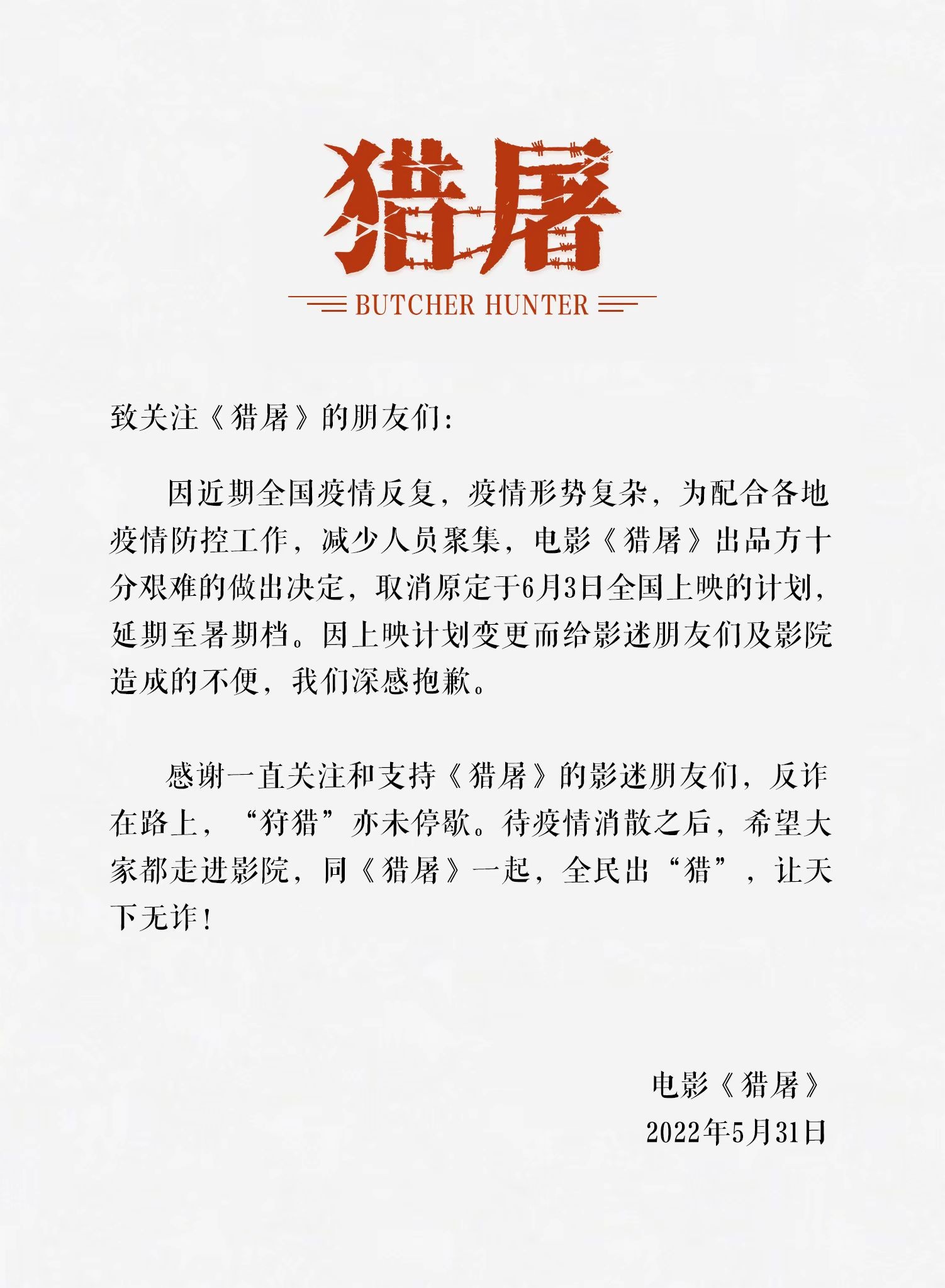 端午节又一大片撤档,电影《猎屠》反诈在路上,“狩猎”亦未停歇,我们推着风雨前进,希望能够早日来到各位身边。