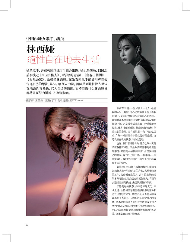 林西娅受邀《时尚北京》杂志专访:随性自在地去生活