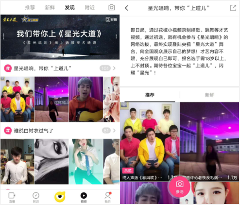 发小视频就能上《星光唱响》 花椒携手央视网为网友点亮《星光大道》