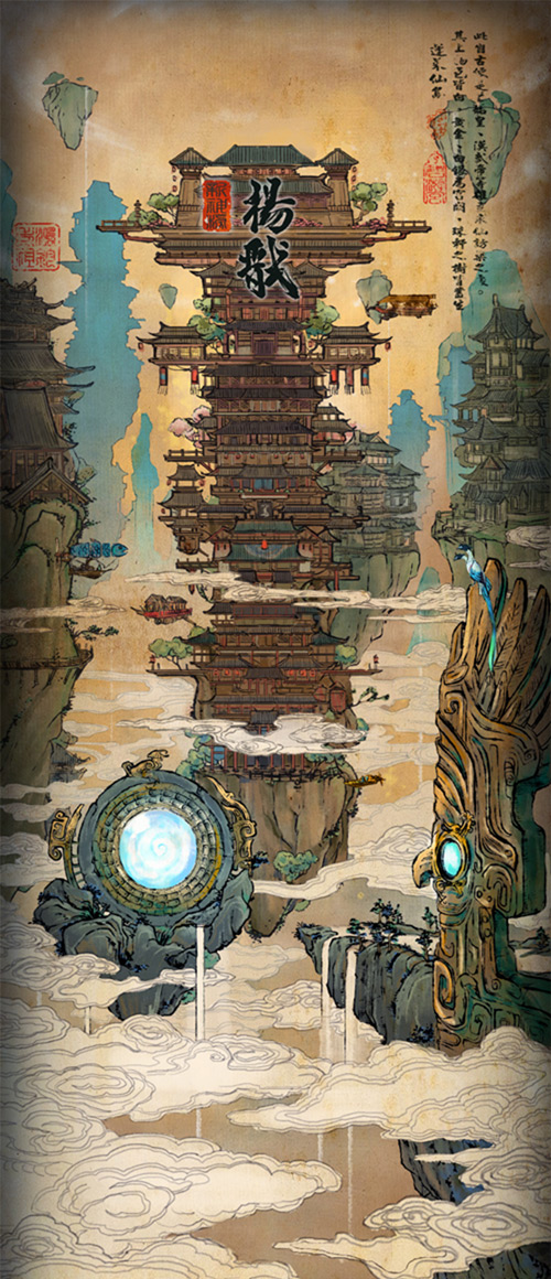 今日同期发布的“大开眼界”手绘海报,由“新神榜”系列艺术总监龟爷绘制,海报用极具美感的笔触勾勒出片中主要场景蓬莱、金霞洞、瀛洲仙乐坊、华山的美景,闲适感十足的杨戬、仙气飘飘的婉罗、倔强的沉香与场景融为一体,令人心旷神怡。杨戬、沉香两个民间传说中“劈山救母”故事的主人公,仿佛相互映照,两人这次在全新古风仙境中经历了惊天动地的冒险旅程,结尾处更是呈现了让无数观众感动不已的亲情体验。