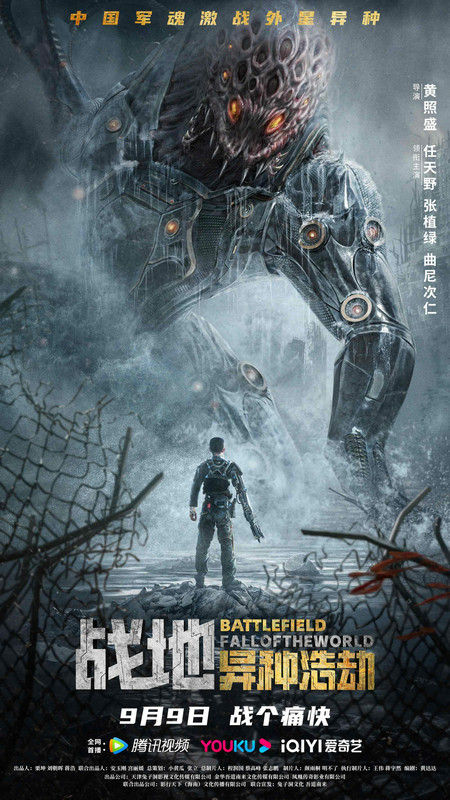 由天津兔子洞影视文化传媒有限公司、金华吾道南来文化传媒有限公司、凤凰传奇影业有限公司出品,影行天下文化传播有限公司联合出品,黄照盛执导,⻩锟担当编剧,任天野、张植绿、曲尼次仁领衔主演,以末日灾难为背景的硬核军事怪兽科幻电影《战地:异种浩劫》今日发布定档海报,将于9月9日上线腾讯视频、优酷、爱奇艺。