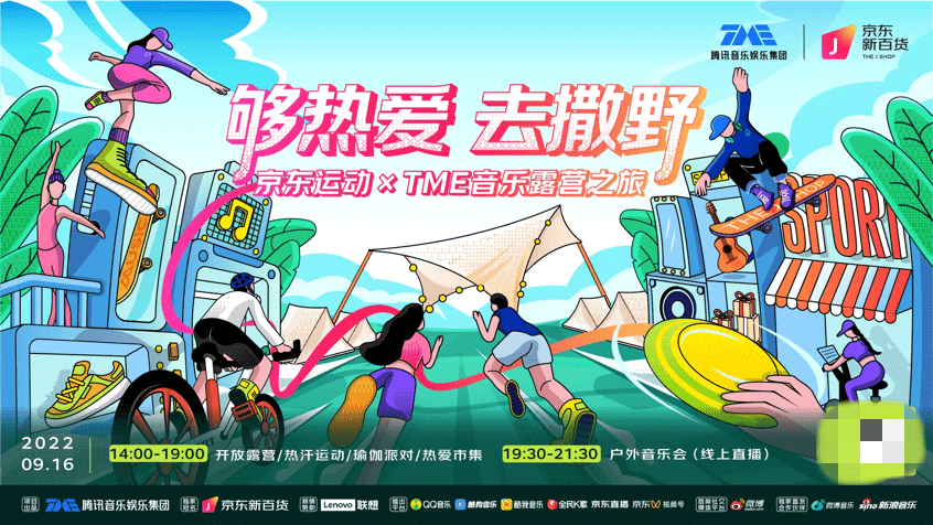 腾讯音乐联合京东运动打造“够热爱,去撒野”音乐露营之旅官宣