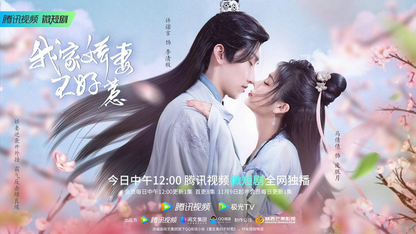 由代强执导,马倩倩、许诺言领衔主演的古装网剧《我家娇妻不好惹》于腾讯视频开播。本剧由深圳市腾讯计算机系统有限公司、陕西芒果影视文化有限公司、陕西广电影视文化产业发展有限公司、北京眨眼传媒有限公司出品。锁定腾讯视频,一场“野蛮娇妻”与“宠妻狂魔”的大型奔赴即刻上演!