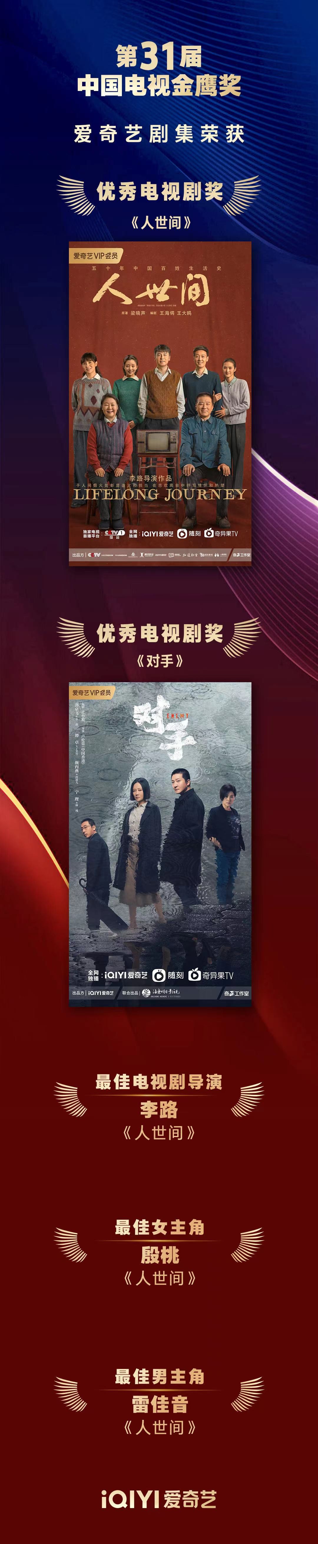 本届中国电视“金鹰奖”由中国文学艺术界联合会、湖南省人民政府、中国电视艺术家协会主办,对近两年优秀电视文艺作品进行表彰。此次爱奇艺《人世间》《对手》在众多入围作品中脱颖而出,展现出爱奇艺坚持围绕时代的中坚力量和大众心中的至善至美创作内容,用高品质作品书写历史与时代,用精品内容矩阵丰富人民精神生活,推动网络视听产业向上向善发展。