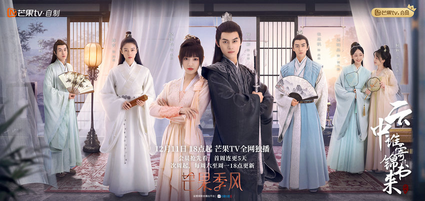云中谁寄锦书来,才下眉头,却上心头。由郭会中执导,谢彬彬、吴佳怡、傅菁、张思帆主演的芒果季风网剧《云中谁寄锦书来》12月11日18:00起,芒果TV全网独播,会员抢先看,首周连更5天,次周起每周六至周一18:00更新。